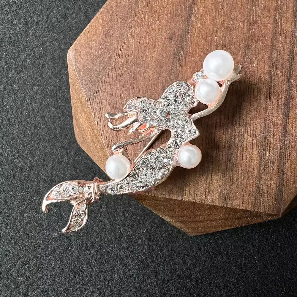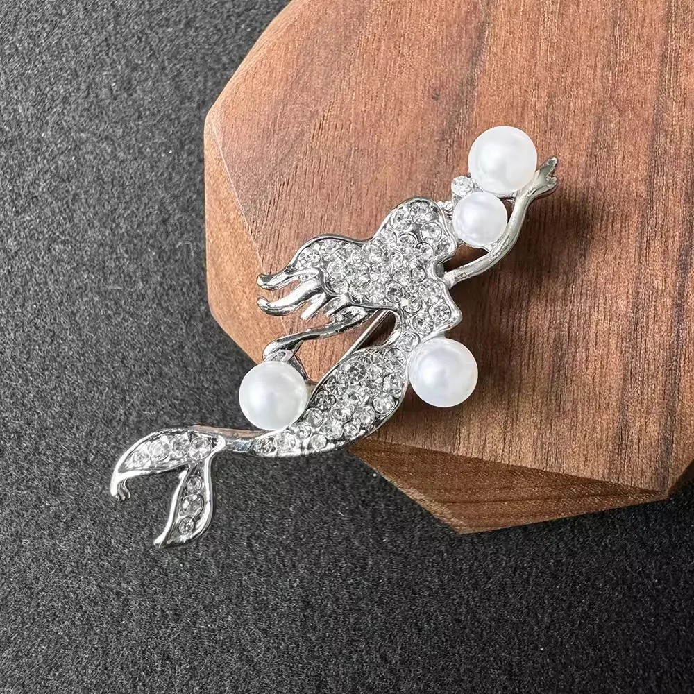 Exquisite Pearl Mermaid Brooch for Men Women Fashion Luxury Animal Brooches Pins Jewelry Accessories Party Gifts 2024 Trend