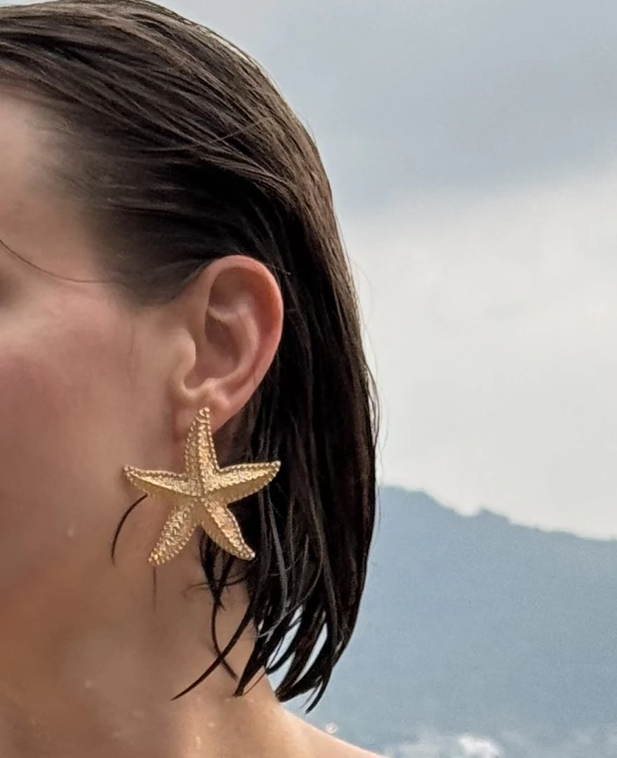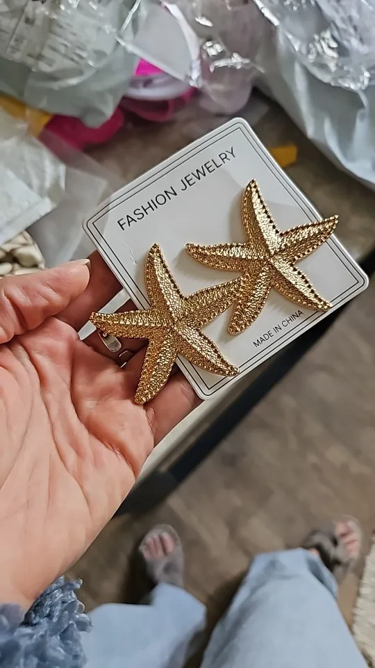 35 reviews for Fashion Exaggeration Summer New Golden Starfish Earrings for Woman Holiday Party Bohemian Jewelry Accessories for Women