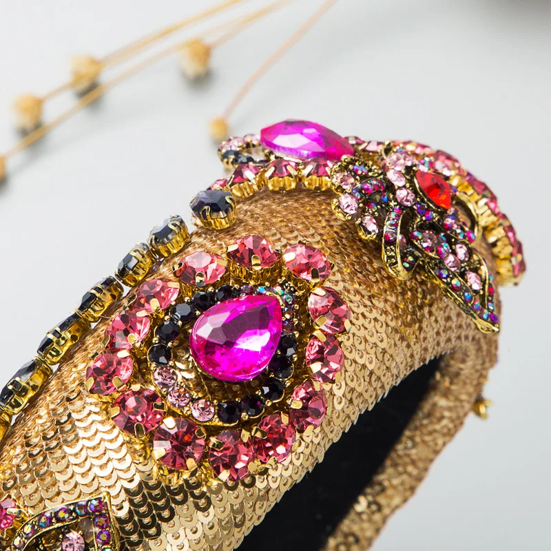 Luxury Baroque Palace Style Full Rhinestone Headband Hair Accessories Women Thickened Sponge Embroidery Prom Hairband Hair Hoop 6