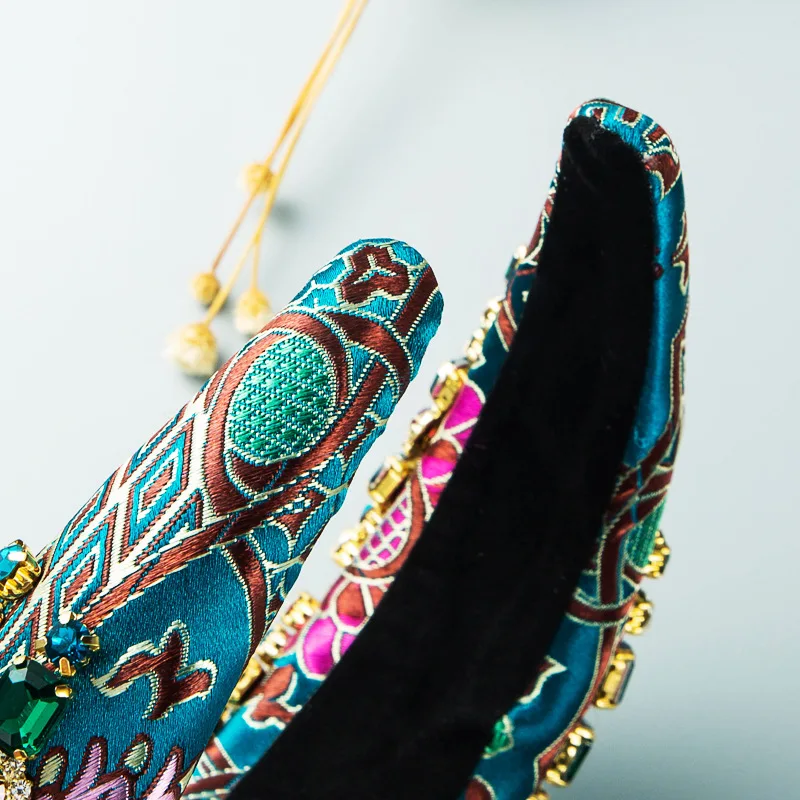 Luxury Baroque Palace Style Full Rhinestone Headband Hair Accessories Women Thickened Sponge Embroidery Prom Hairband Hair Hoop 4