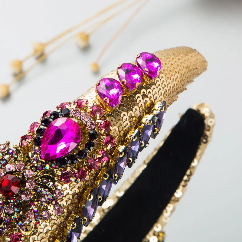 Home Mermaid & Siren Items Luxury Baroque Palace Style Full Rhinestone Headband Hair Accessories Women Thickened Sponge Embroidery Prom Hairband Hair Hoop