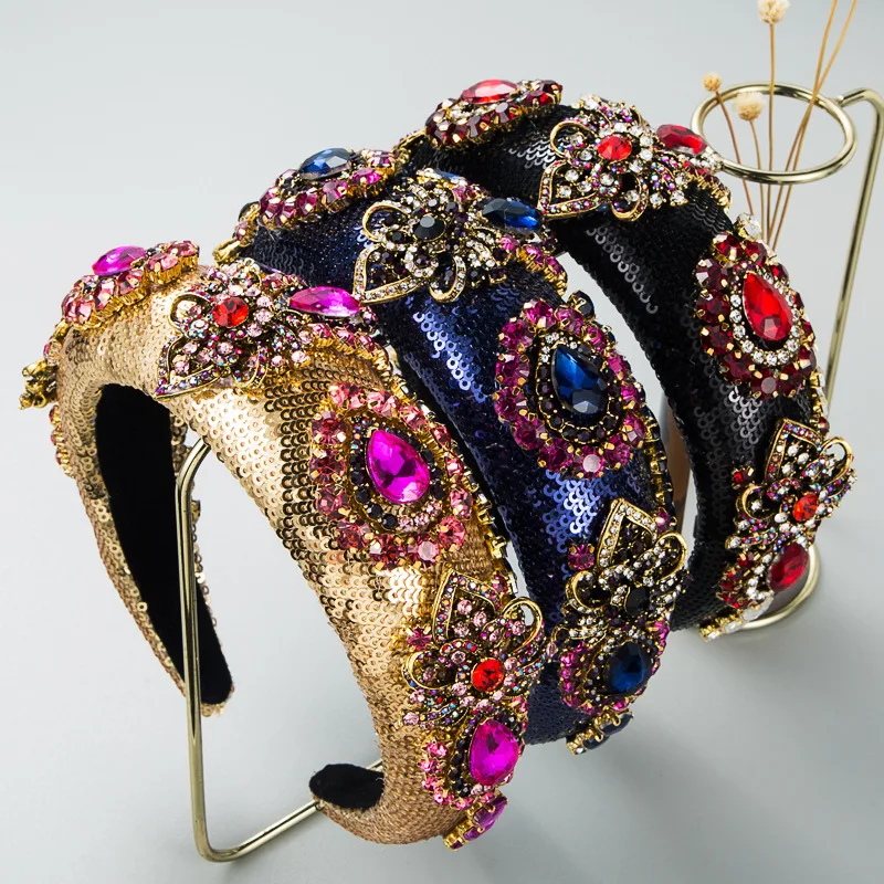 6 reviews for Luxury Baroque Palace Style Full Rhinestone Headband Hair Accessories Women Thickened Sponge Embroidery Prom Hairband Hair Hoop