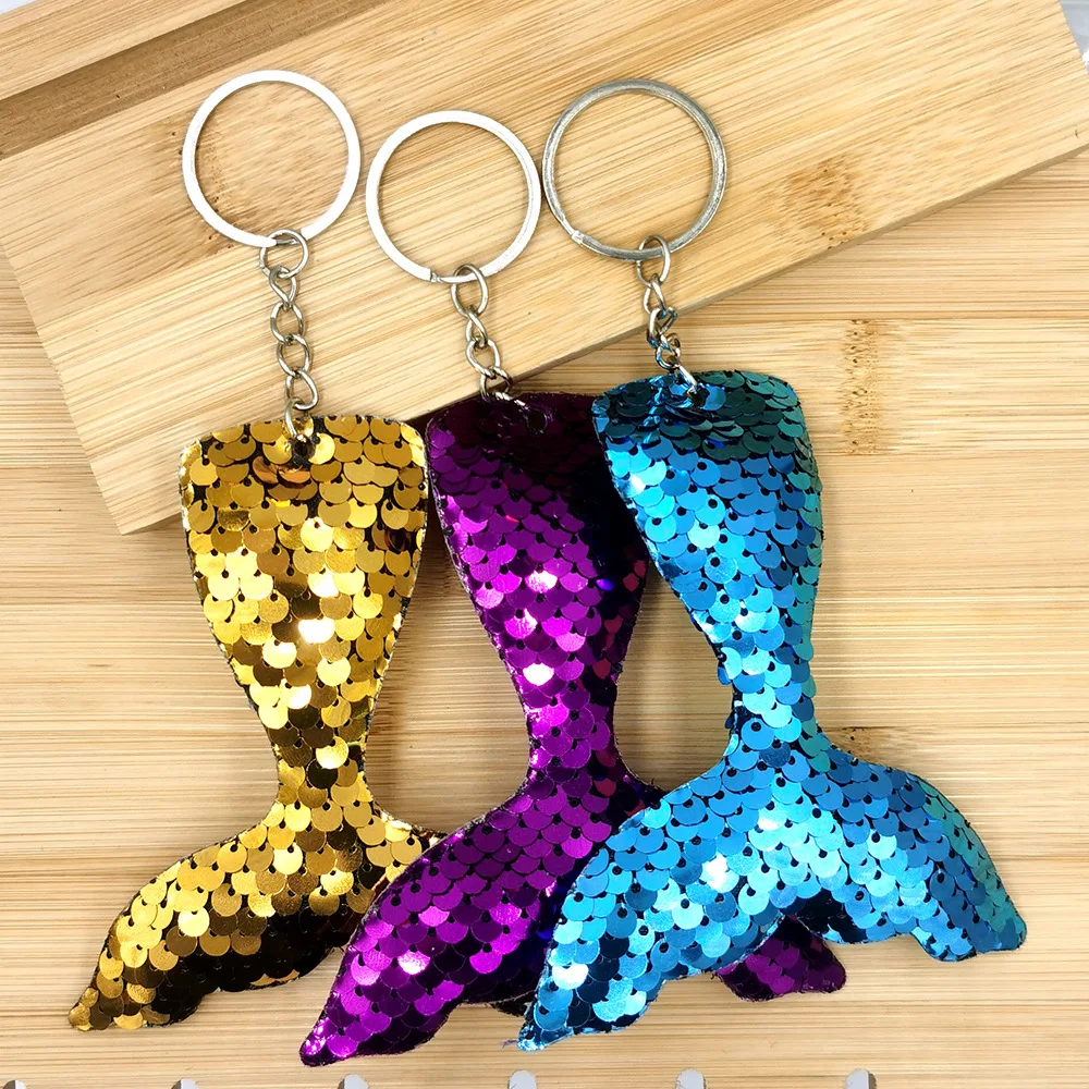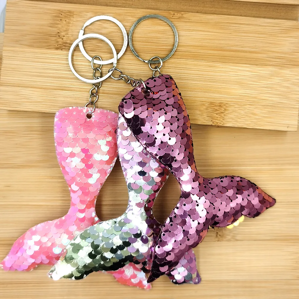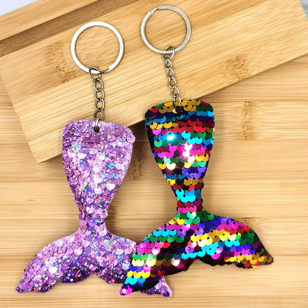 Reflective Mermaid Keychain Fashion Sequin Mermaid Tail Accessories Car Luggage Pendant Wholesale Keychain Pouch
