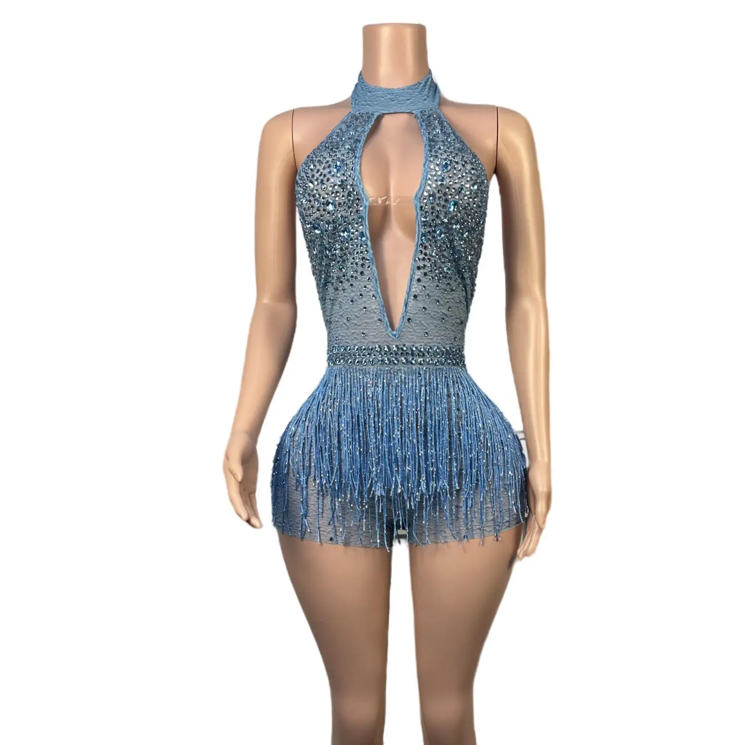 Rhinestones Tassels Bodysuit for Women Singer Dancer Performance Dance Costume Dance Troupe Show Wear Nightclub Outfit Shengxia