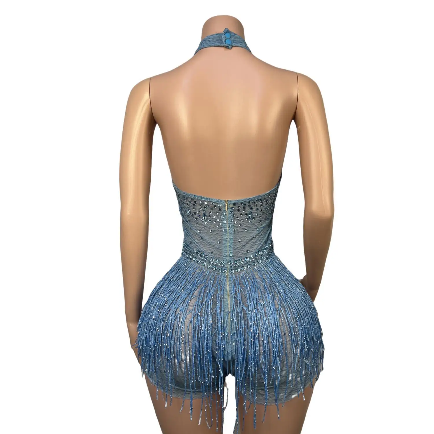 Rhinestones Tassels Bodysuit for Women Singer Dancer Performance Dance Costume Dance Troupe Show Wear Nightclub Outfit Shengxia 4
