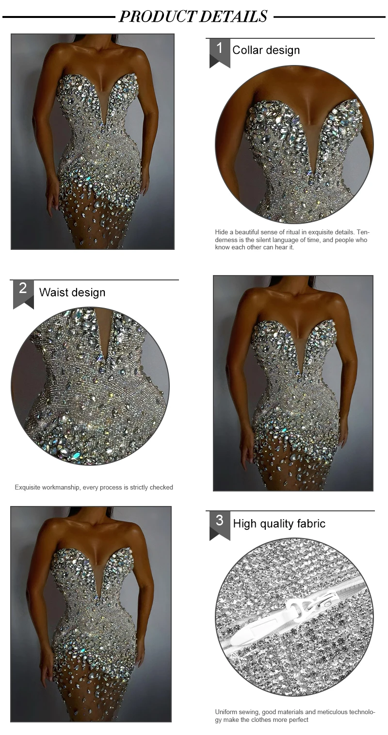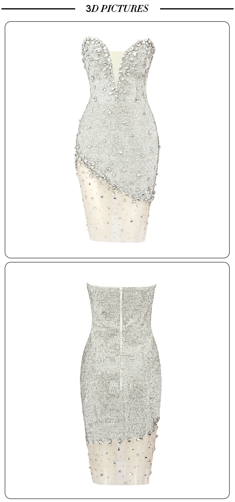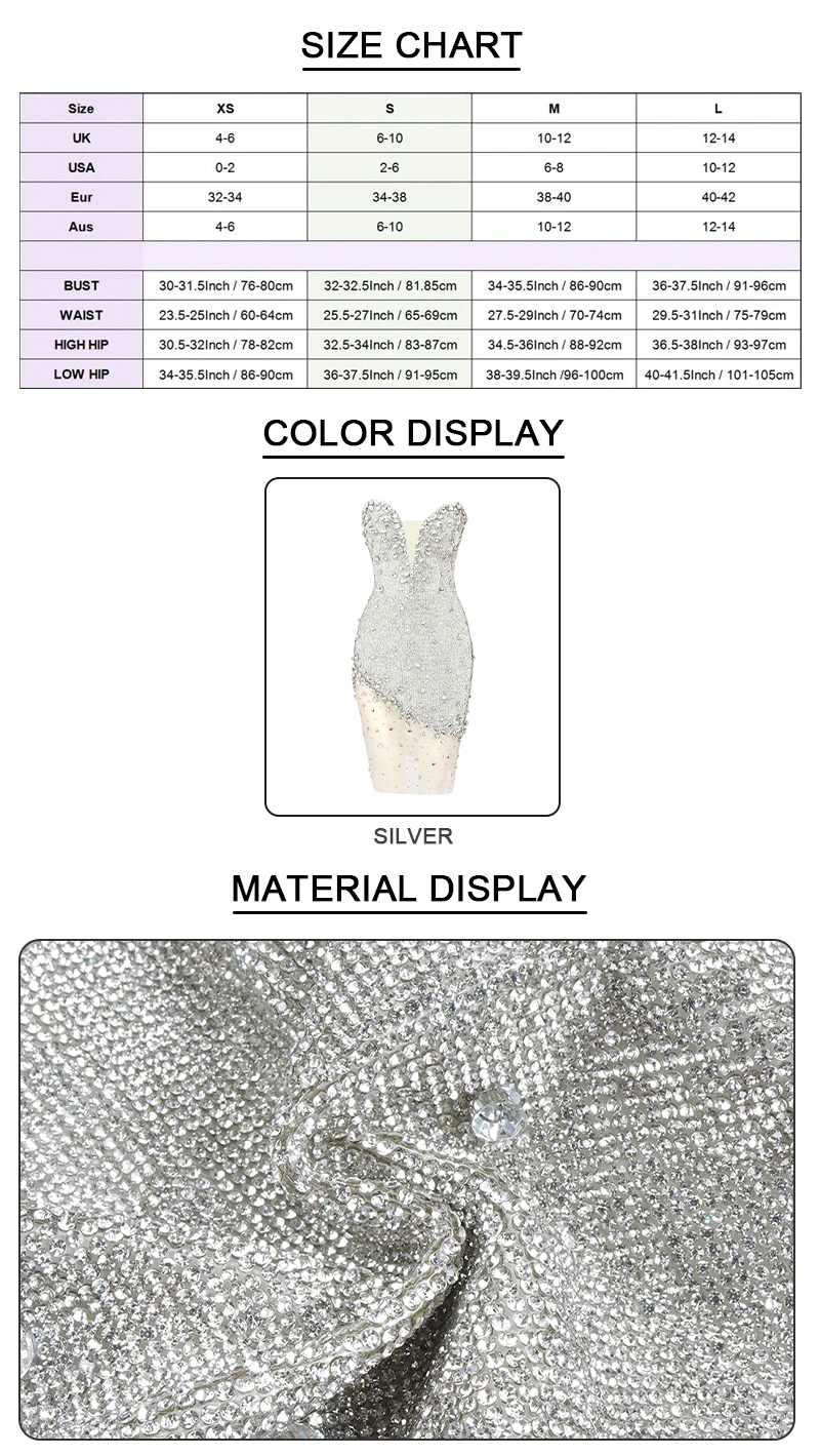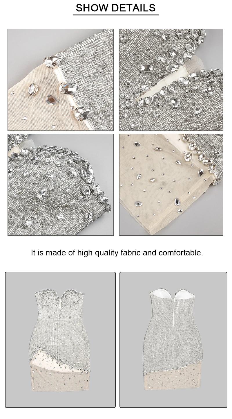 2 reviews for VC Luxury Dress Women Glitter Cystal Beaded Silver Patchwork Mesh Short Party Clubwear Stage Performance