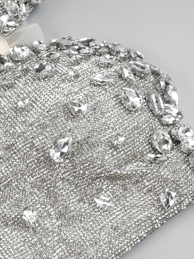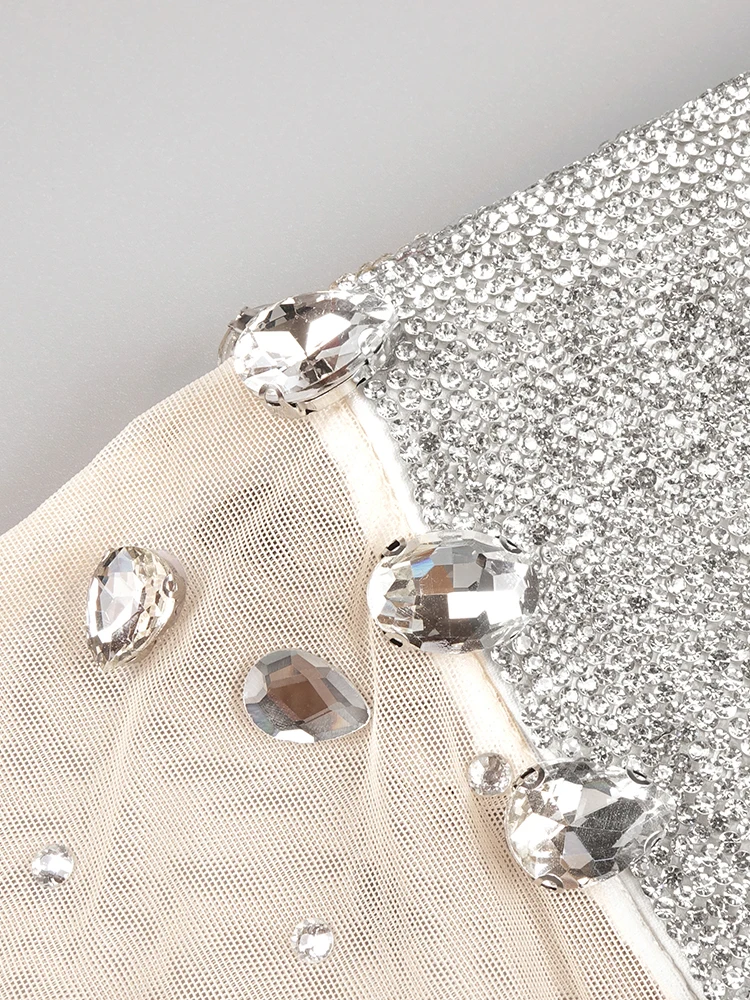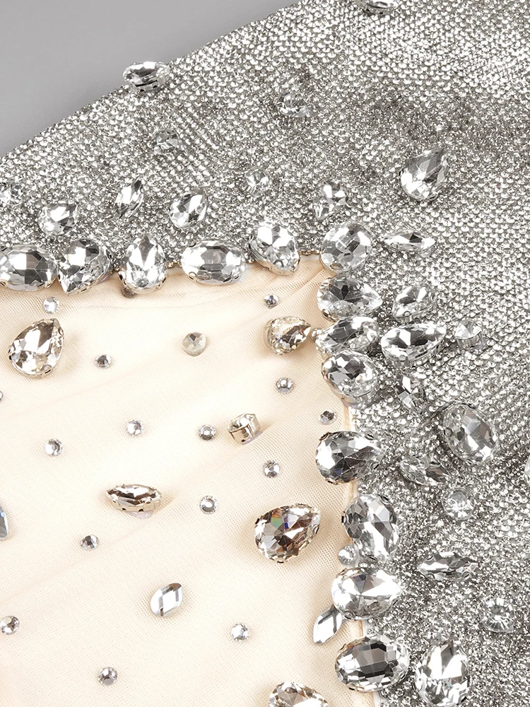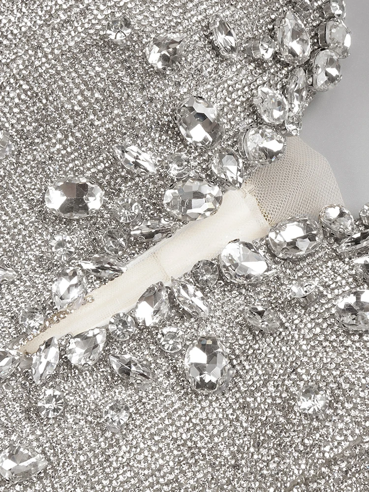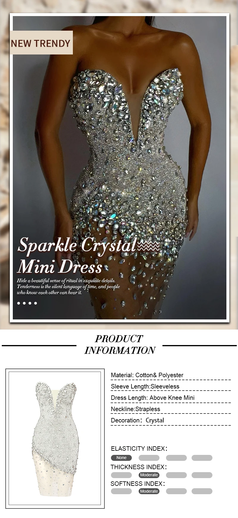2 reviews for VC Luxury Dress Women Glitter Cystal Beaded Silver Patchwork Mesh Short Party Clubwear Stage Performance