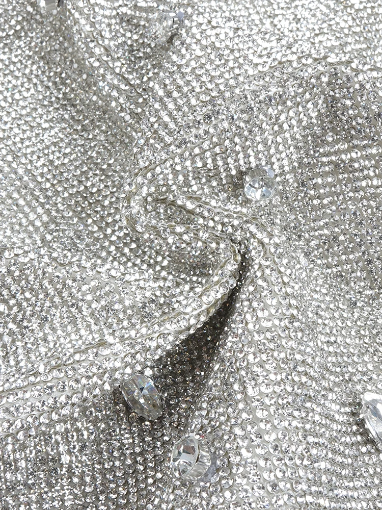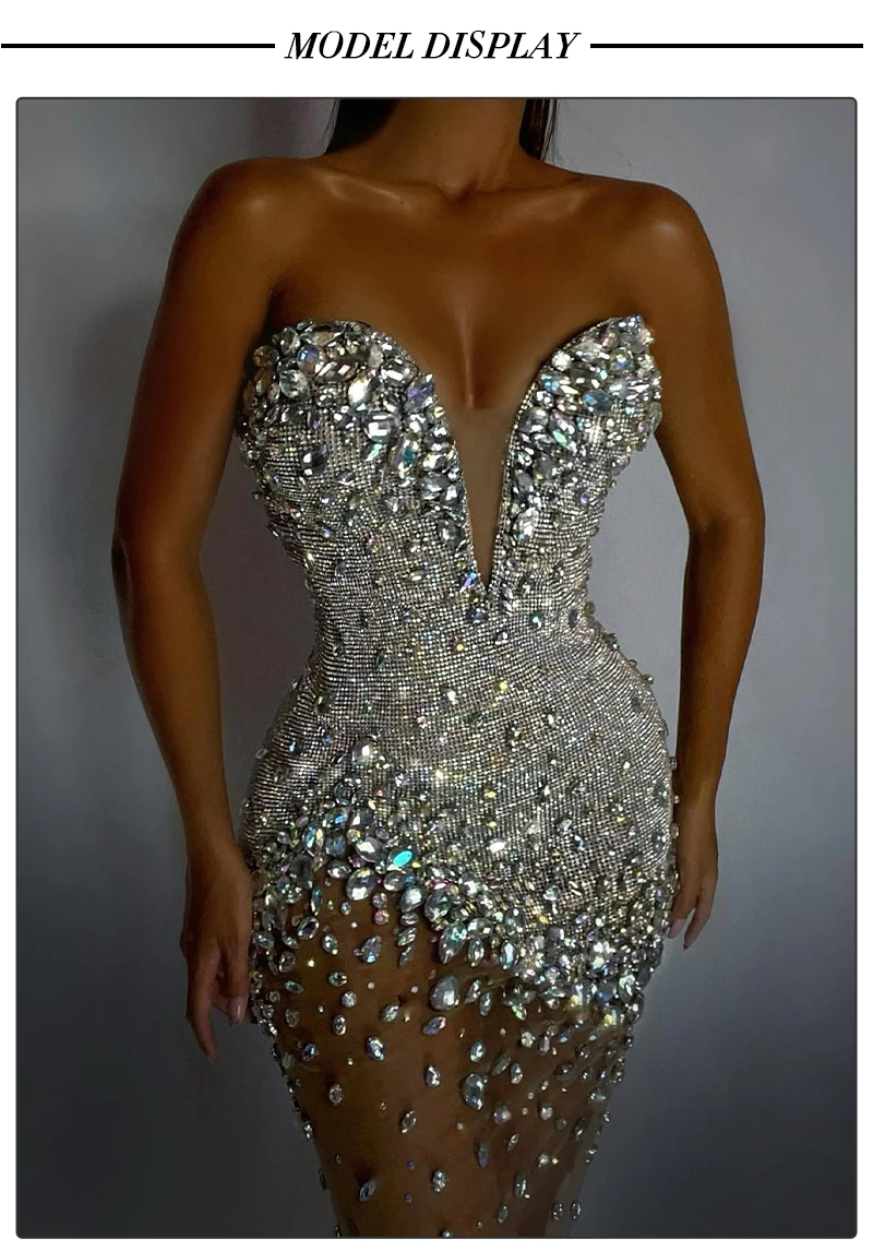 VC Luxury Dress Women Glitter Cystal Beaded Silver Patchwork Mesh Short Party Clubwear Stage Performance