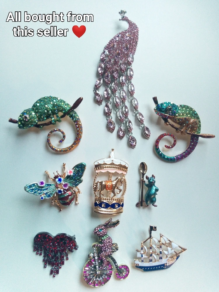 Beautiful brooches, I have ordered many times from this store, and all beautiful, highly recommended, arrived super fast at my home, thank you